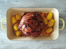 Bei 180 Grad ca. 20 Minuten zugedeckt und anschließend weitere 30 Minuten weiterbraten. Wer mag kann auch die Kartoffeln mit in den Ofen geben (nach den 20 Minuten).