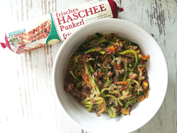2 Zucchini, 2 Karotten, 2 Knoblauchzehen,1 Zwiebel, 1 HASCHEE-PUNKERL (250 g)